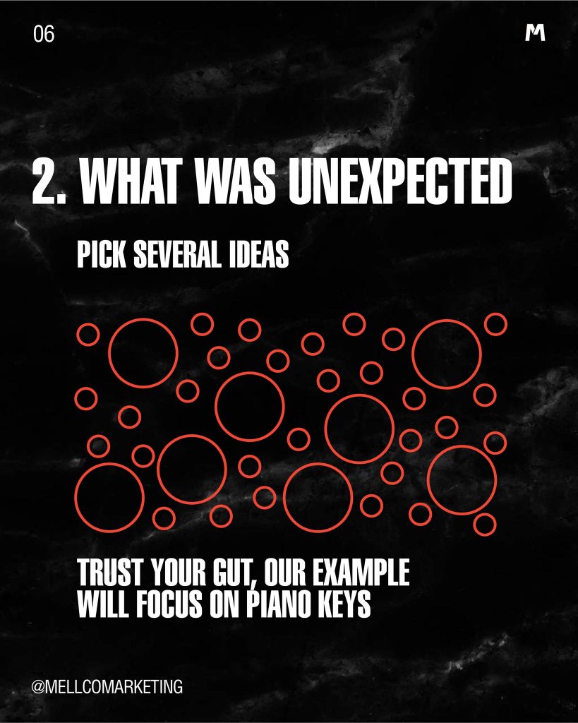 Pro tip #1- The #1 killer of creative exercises is being critical of any initial ideas. Focus on the list, not how good the ideas are for the next step